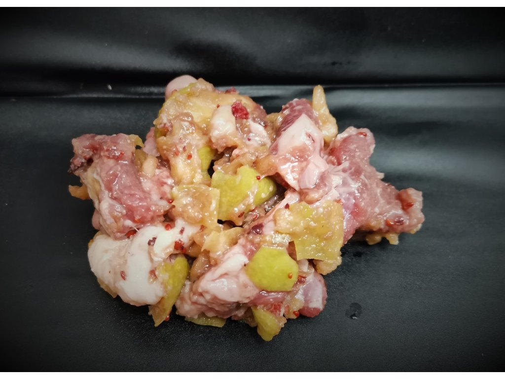 Složení: 40% vepřový ořez, 40% kachní skelety, 20% jablko a brusinky